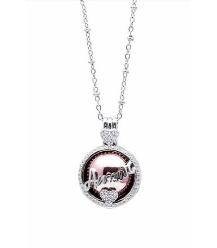 Collar de embarazo / llamador de ángeles bicolor para mujer, de acero inoxidable , con Amor, corazón y circonitas blancas con bola sonora bañada en oro rosa (Ø16 mm) . Longitud: 100 cm (90 + 10 cm de extensión).Sus datos :