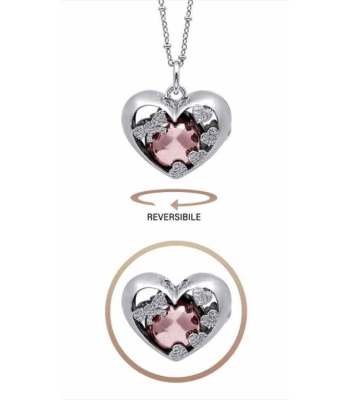 Collar de embarazo / llamador de ángeles Corazón en latón rodiado y circonitas con bola sonora en chapado en oro rosa (Ø16 mm) y cadena de acero ajustable 90+10cmSus datos :