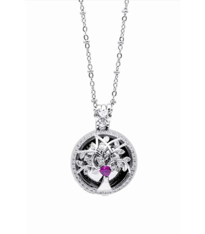 Collar de embarazo / llamador de ángeles para mujer, de acero inoxidable, con Árbol de la Vida, corazón y circonita blanca con fucsia. Longitud: 100 cm (90 cm + 10 cm de extensión).Sus datos :