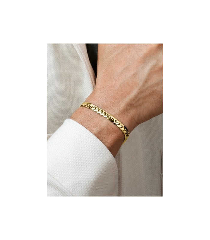 LOTUS STYLE LS2210-2/2 Pulsera de acero chapado en oro de eslabón plano y antialérgico unisex