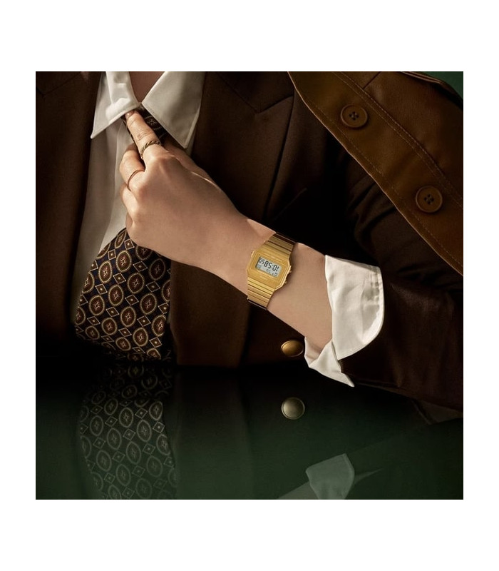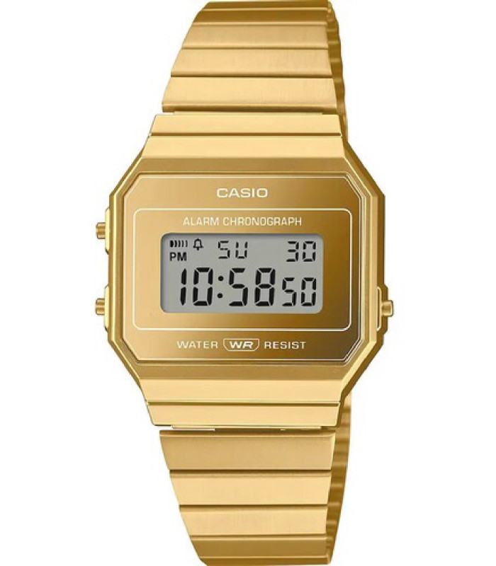 Reloj Casio Retro Digital iconic A700WEVG-9AEF dorado Classic Edgy con caja de plástico con un diámetro de 36 mm y correa de acero dorado.
