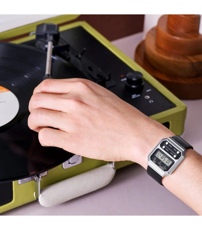 Reloj Unisex Plateado Correa Negra Cuero Tribute Alien CASIO - A100WEL-1AEF