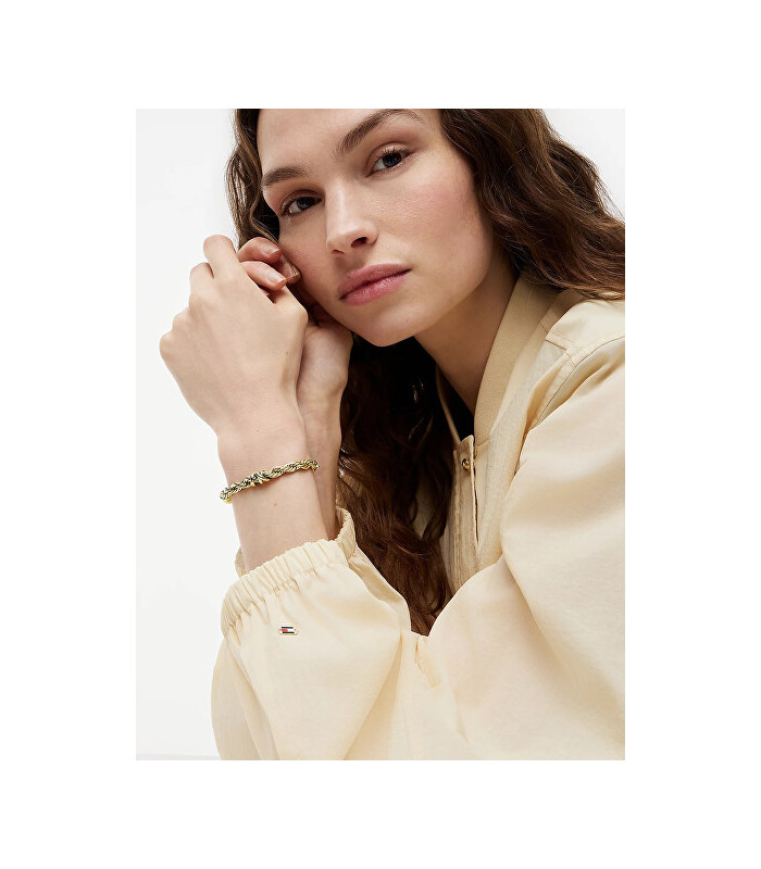 Pulsera Tommy Hilfiger 2781026 Rope Chain Bracelet with knot, para mujer, fabricada en acero inoxidable antialérgico chapado en oro. De diseño moderno, compuesta por un cordón náutico con nudos. Cierre de mosquetón