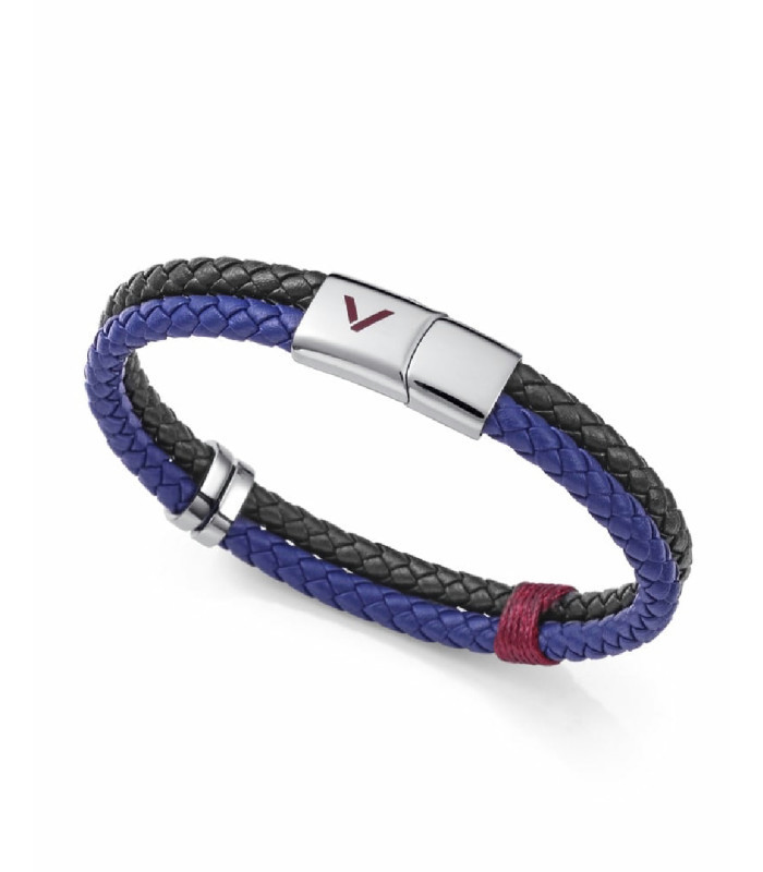 Pulsera Hombre Piel Negra y Azul de Acero VICEROY FASHION - 75426P01013